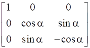 Here, A11 = -1, A12 = 0, A13 = 0, A21 = 0, A22 = -cosα, A23 = -sinα, A31 = 0, A32 = -sinα, A33 = cosα.