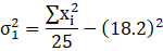 Given: Number of observations = 25, mean = 18.2 seconds, standard deviation = 3.25 seconds. Another set of 15 observations x1, x2, ..., x15, also in seconds, is and