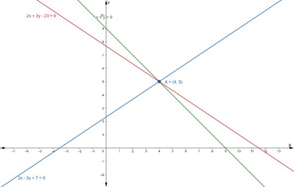 Hence, the point of intersection P(x1, y1) is (4, 5)