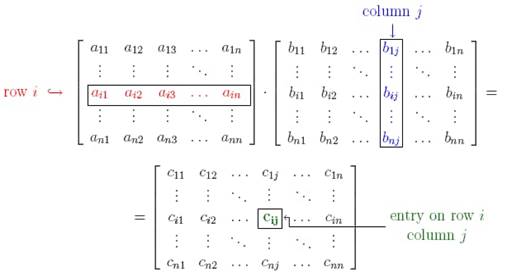 Where cij = ai1b1j + ai2b2j + ai3b3j + ……………… + ainbnj