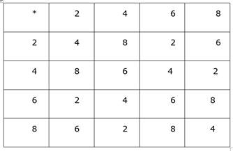 Write the composition table for the binary operation multiplication modulo 10(×10) on the set S = {2, 4, 6, 8}.