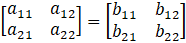 a11 = b11, a12 = b12, a21 = b21 and a22 = b22