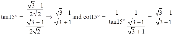 Cos15° = cos(45° - 30°) …………(using cos(A - B) = cosAcosB + sinAsinB)