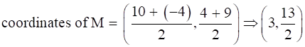 Now to find the equation of perpendicular bisector first, we will find mid - point of the given line using mid - point formula (call it midpoint as M),
