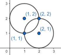 Find the equation of the circle which passes through the points A(1, 1) and B(2, 2) and whose radius is 1. Show that there are two such circles.