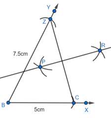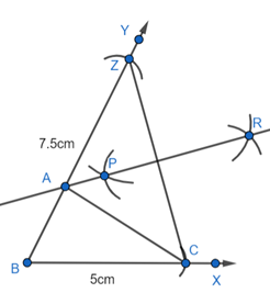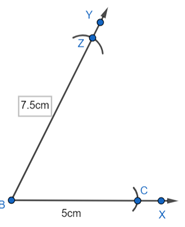 With B as center and 7.5cm as radius draw an arc that intersects BY at Z.