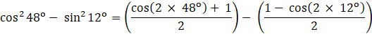 cos2 48o – sin2 12o
