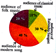 i. It can be easily seen from the pie-chart that the sector of the audience of Folk song=20% of the total circular region.