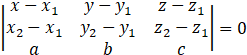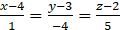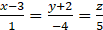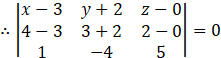 Here, x1 = 3 , y1 = -2 , z1 = 0 , a= 1 , b = -4 , c = 5