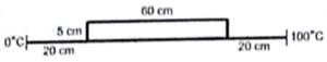 Consider the situation shown in figure. The frame is made of the same material and has a uniform cross-sectional are everywhere. Calculate the amount of heat flowing per second through a cross-section of the bent part if the total heat taken out per second from the end at 100°C is 130J.