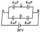 b) If a capacitor is connected between C and D, what charge will appear on this capacitor?