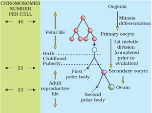 Construct a flow chart exhibiting sequential events of oogenesis.