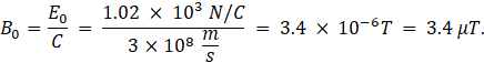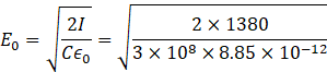 The intensity of the sunlight reaching Earth is 1380 W m−2. Assume this light to be a plane, monochromatic wave. Find the amplitudes of electric and magnetic fields in this wave.