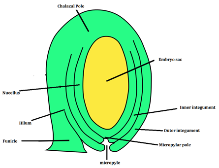 (a) Draw a labelled diagram of the sectional view of a typical anatropous ovule.