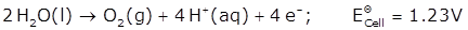 4OH– (aq) → 2H2O (l) + O2 (g) + 4e–