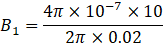 μ0 is the permeability of free space, μ0= 4π × 10-7 T mA-1