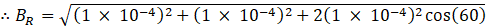By geometry we can calculate the angle between B1 and B2 which turns out to be 60° .