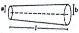 Figure shows conductor of length ℓ having a circular cross-section. The radius of cross-section varies linearly from a to b. The resistivity of the material is ρ. Assuming that b – a << ℓ, find the resistance of the conductor.