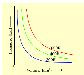 The variation of pressure with volume of the gas at different temperatures can be graphically represented as shown in Fig. 5.3. On the basis of this graph answer the following questions.