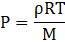 where P is the pressure of the gas and ρ is the density. From ideal gas law