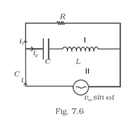 Consider the LCR circuit shown in Fig 7.6. Find the net current i and the phase of i. Show that