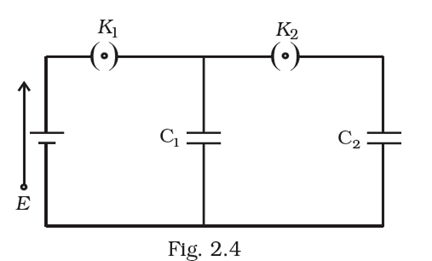 In the circuit shown in Fig. 2.4. initially key K1 is closed and key K2 is open. Then K1 is opened and K2 is closed (order is important).