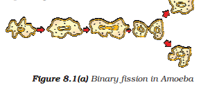 (i) The various steps involved in the process of binary fission with the help of a diagram are: