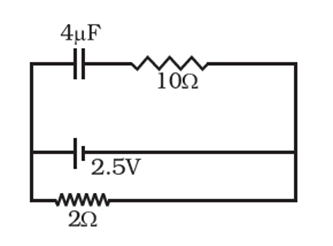 A capacitor of 4 μ F is connected in a circuit as shown. The internal resistance of the battery is 0.5 Ω. The amount of charge on the capacitor plates will be
