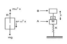 A small block of mass m is kept on a bigger block of mass M which is attached to a vertical spring of spring constant k as shown in the figure. The system oscillates vertically. (a) Find the resultant force on the smaller block when it is displaced through a distance x above its equilibrium position. (b) Find the normal force on the smaller block at this position. When is this force smallest in magnitude? (c) What can be the maximum amplitude with which the two blocks may oscillate together?