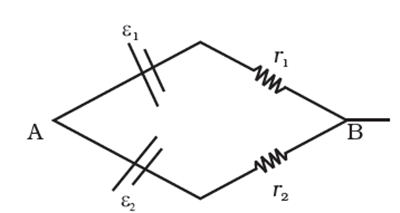Two batteries of emf ε1 and ε2 (ε2 > ε1) and internal resistances r1 and r2 respectively are connected in parallel as shown.