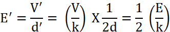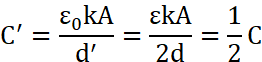 Therefore, when the distance between the plates is double, the electric field will reduce