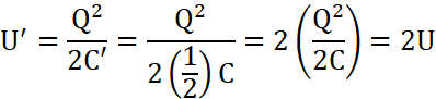 Therefore, when the distance between the plates is doubled, the capacitance reduces to half. Therefore, energy stored in the capacitor becomes double.