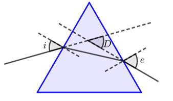 (a) With the help of labelled ray diagram show the path followed by a narrow beam of monochromatic light when it passes through a glass prism.