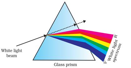 (b) When a white beam of light is allowed to pass through the prism, it will get dispersed into its 7 color component of spectrum of light. The splitting of light into its component colours is called dispersion.