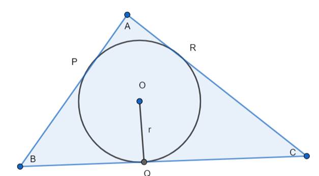 In the figure shown below, the sides AB, BC and CA of a triangle ABC touch a circle with centre O and radius ‘r’ at P, Q and R respectively. Prove that: