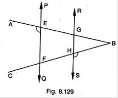 In Fig. 8.129, PQ++RS, ∠AEF =95°, ∠BHS =110° and ∠ABC =x°. Then the value of x is,