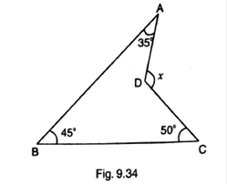 (35o + ∠1) + 45o + (50o + ∠2) = 180o