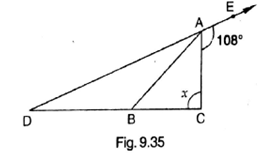 In Fig. 9.35, AB divides ∠DAC in the ratio 1: 3 and AB =DB. Determine the value of x.