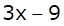 Greatest common factor of the two terms namely 3x and -9 of expression 3x - 9 is 3