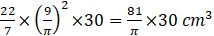 So, volume of cylinder V1 = πr2h =