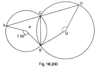 In Fig. 16.200, P and Q are centres of two circles intersecting at B and C. ACD is a straight line. Then, ∠BQD=