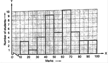 Below is the histogram depicting marks obtained by 43 students of a class: