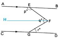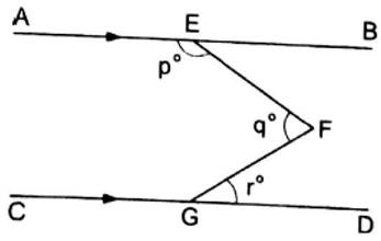 Given AB||CD, ∠AEF = P°, ∠EFG = q°, ∠FGD = r°