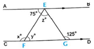 ⇒ ∠AEF = ∠EFG = 75°[Alternate angles]