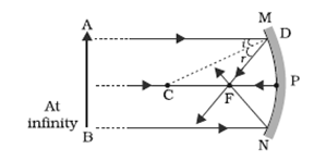 (e) Ray diagram when the object is placed at infinity of the concave mirror: