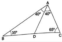 In ∆ABC, ∠B=35°, ∠C=65° and the bisector AD of ∠BAC meets BC at D. Then, which of the following is true?