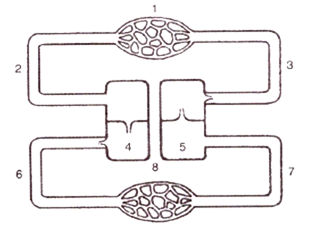 (a) The blood vessels and organs marked by numbers 1 to 8 are in the figure are as shown below: