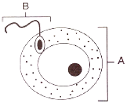 The diagram below represents two reproductive cells A and B. Study the same and then answer the questions that follow: