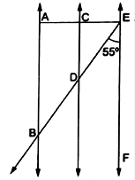 In the given figure, AB || CD || EF, EA ⊥ AB and BDE is the transversal such that ∠DEF = 55°. Then ∠AEB = ?