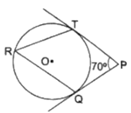 In the given figure, O is the center of a circle. PT and PQ are tangents to the circle from an external point P. If ∠TPQ = 70°, find ∠TRQ.